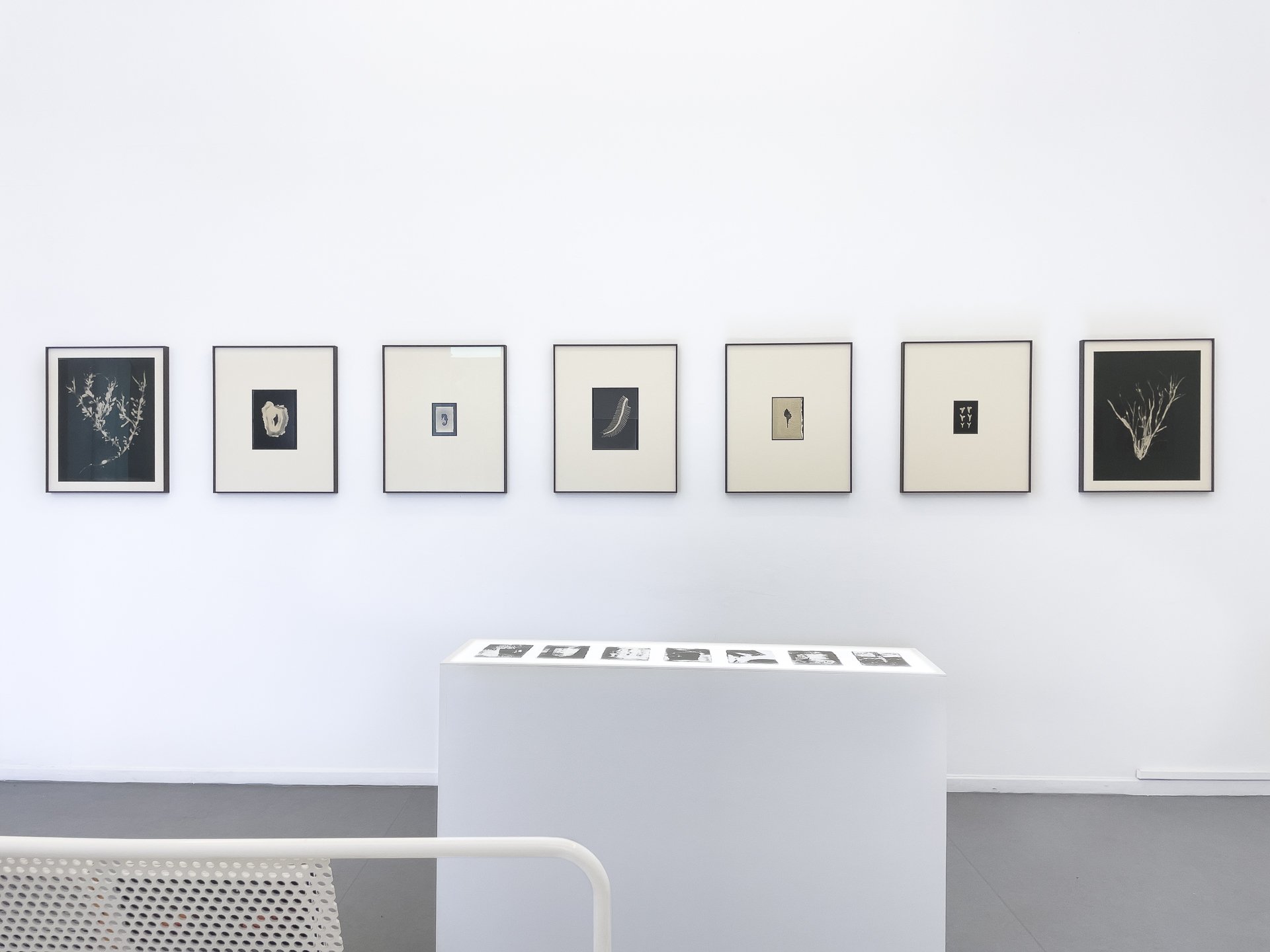 En plus des négatifs, j’ai réalisé des photogrammes en plaçant directement sur du papier photosensible des restes squelettiques d’animaux tels que des poissons et des lapins. Ces formes osseuses, en résonance avec les fossiles incrustés dans les parois des grottes, ont été exposées à un flash de lumière, laissant derrière elles des empreintes spectrales. Les photogrammes, tout comme les négatifs, ont été développés avec ma formule à base de plantes, renforçant ainsi le lien entre les matériaux utilisés dans le processus et l’environnement dont ils sont issus.